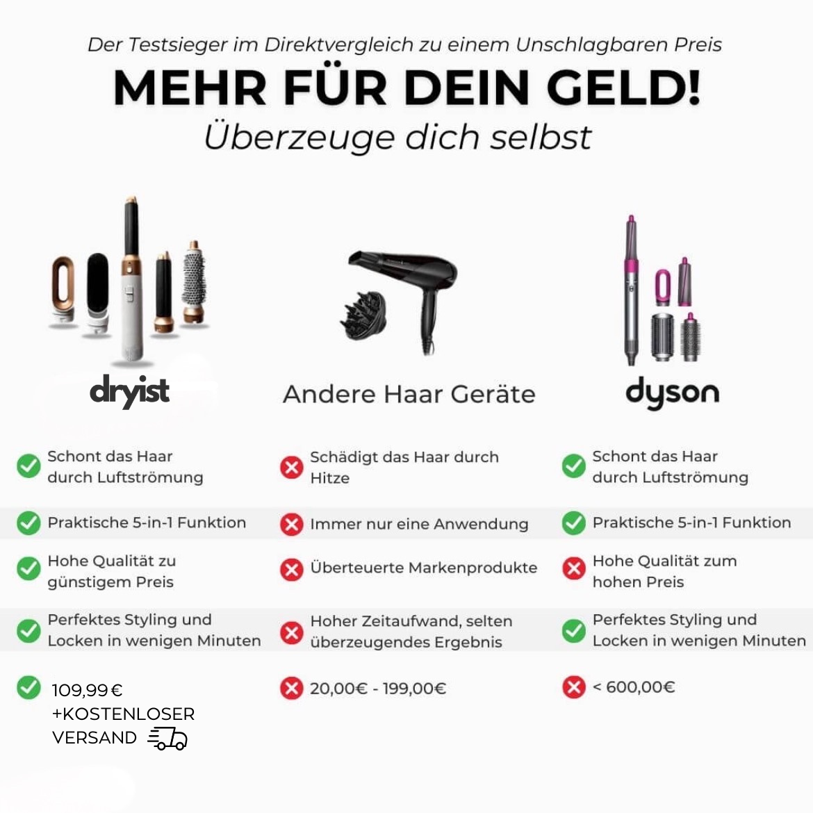 Mit Dryist hast du die Kontrolle über dein Styling und kannst bequem von zu Hause aus professionelle Ergebnisse erzielen. Entdecke den Komfort und die Vielseitigkeit unserer Produkte und spare dabei Kosten und Zeit.