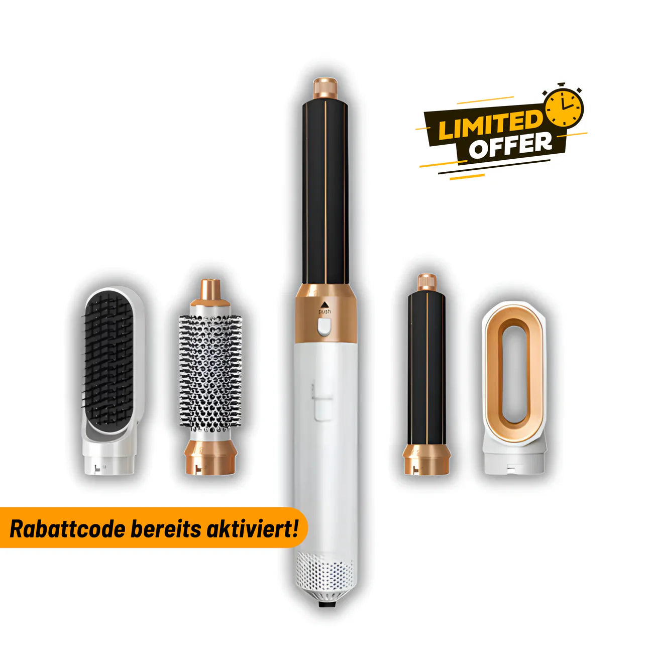 Unser 5-in-1 Haarstyler ist ein wahres Styling-Genie und dazu auch äußerst preiswert. Mit den verschiedenen Aufsätzen kannst du mühelos zahlreiche Frisuren kreieren, die perfekt zu deinem individuellen Stil passen. Ob du einen glatten, glänzenden Look für den Alltag oder voluminöse Locken für besondere Anlässe möchtest – dieser Haarstyler bietet dir alles, was du brauchst.