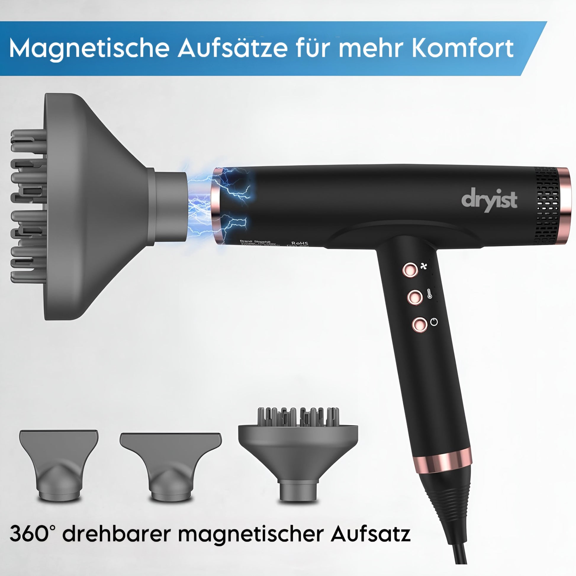 Die Dryist™ Pro kommt mit magnetischen Aufsätzen, die das Styling super einfach machen. Dank der 360°-Drehung kannst du easy zwischen verschiedenen Looks wechseln und jedes Mal ein perfektes Finish zaubern.